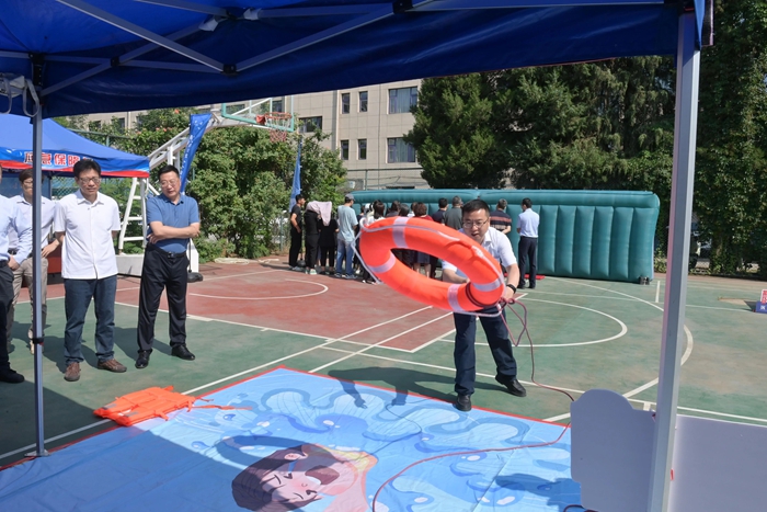 演練結(jié)束后,舉辦方在大廈籃球場(chǎng)開(kāi)啟安全咨詢體驗(yàn)活動(dòng)。整個(gè)活動(dòng)共設(shè)置了6個(gè)項(xiàng)目,分別為擁擠踩踏應(yīng)急處置體驗(yàn)區(qū)(充氣帳篷)、消防隱患排查試驗(yàn)區(qū)、電動(dòng)車電池穿刺爆燃體驗(yàn)裝置、溺水自救互救教學(xué)培訓(xùn)區(qū)、醉酒交通AR模擬體驗(yàn)、安全標(biāo)志互動(dòng)區(qū)?;顒?dòng)現(xiàn)場(chǎng)氣氛熱烈,盡管天氣炎熱,但絲毫沒(méi)有減弱大家體驗(yàn)掌握應(yīng)急技能的熱情。