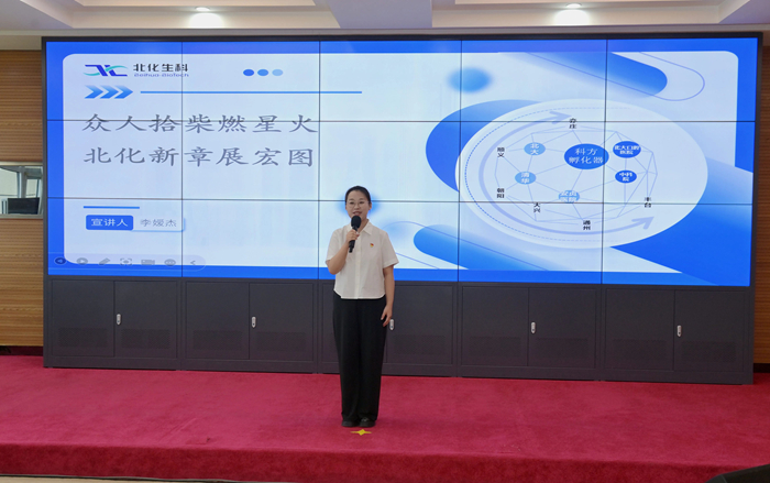 在首先舉行的“職工宣講比賽決賽暨先進事跡報告會”上,從預賽29名參賽者中脫穎而出的選手們,依次走上講臺,深情宣講扎根“三個北化”建設(shè)一線的鮮活故事。來自北化生科、華騰檢測、化研院、北搪公司的4名宣講員進行了精彩的宣講展示,他們生動講述了北化人面向生物醫(yī)藥新“藍海”的無畏拓進,在市場營銷、科研開發(fā)、信訪維穩(wěn)等重點工作中攻堅克難的感人故事。來自技師學院、北普公司、北化房地產(chǎn)公司的3名宣講員進入決賽,他們或講述職業(yè)教育的酸甜苦辣、或反映現(xiàn)代產(chǎn)線的紛繁復雜、或展示酒店行業(yè)的微笑服務(wù),娓娓道來的深情告白,無不體現(xiàn)出北化人心系首都發(fā)展安全、情系百姓健康幸福的錚錚誓言。