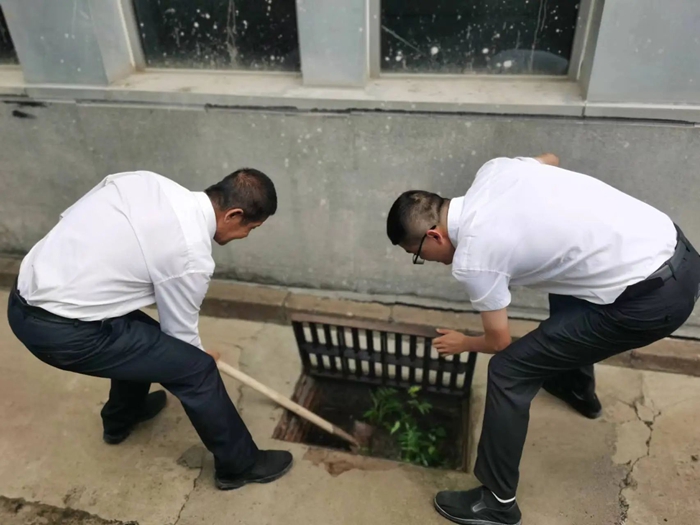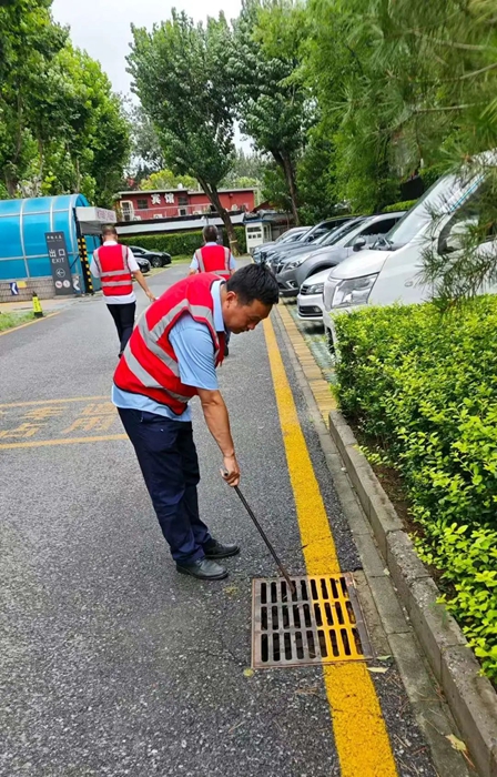 在接到暴雨紅色預(yù)警后,各事業(yè)部迅速行動(dòng),對樓宇屋面、排水管道、下水井等進(jìn)行細(xì)致檢查,及時(shí)清理雜物,同時(shí)各事業(yè)部迅速將防汛物資補(bǔ)充到可能發(fā)生汛情的低洼位置,以便出現(xiàn)險(xiǎn)情第一時(shí)間救援。