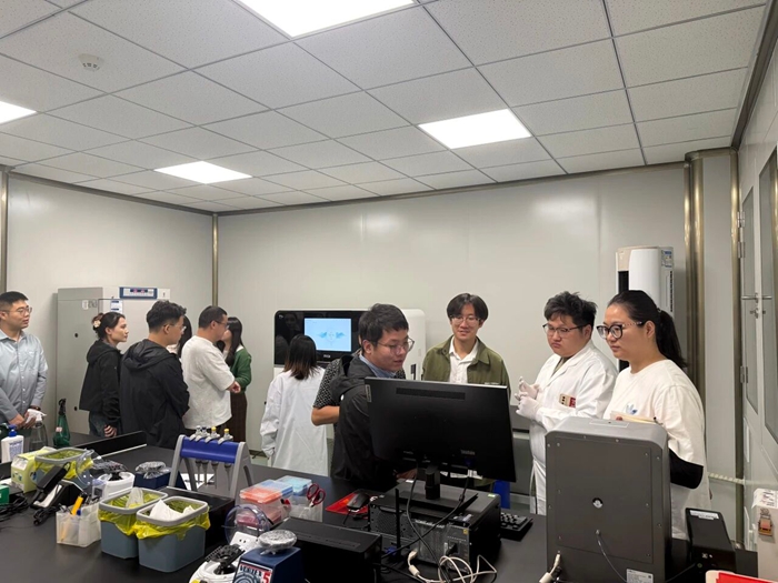 團(tuán)員青年們來到毗鄰清華大學(xué)、北京大學(xué)的北化生科公司國際生物島現(xiàn)場參觀學(xué)習(xí)。工作人員介紹了北化生科公司的整體規(guī)劃與發(fā)展歷程,重點(diǎn)介紹了集團(tuán)生物醫(yī)藥產(chǎn)業(yè)布局、核心服務(wù)平臺功能、重點(diǎn)產(chǎn)業(yè)集群優(yōu)勢以及未來發(fā)展目標(biāo)愿景。隨后,團(tuán)員青年們走進(jìn)實驗室,專業(yè)人員為他們講解了基因測序等基礎(chǔ)知識,并結(jié)合正在開展的科研項目,生動介紹了這些技術(shù)在實際研發(fā)中的應(yīng)用場景與巨大潛力。
