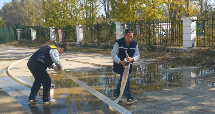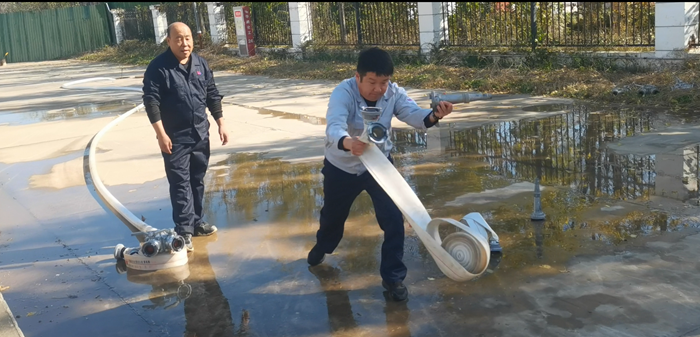 同時(shí),華騰化工還專門組織了消火栓實(shí)操。“先接水帶、再開閥門、最后對(duì)準(zhǔn)目標(biāo)出水!”在安全員的指導(dǎo)下,員工兩人一組協(xié)作,快速完成水帶連接、水槍連接等步驟,水柱精準(zhǔn)噴射至指定區(qū)域,整個(gè)過程有條不紊。