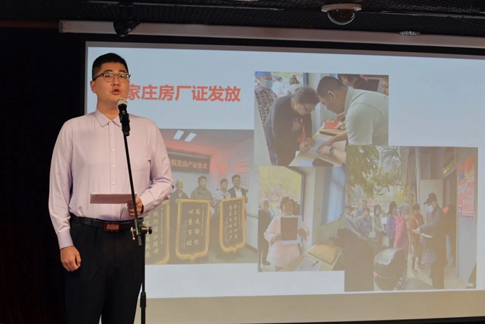 集團領(lǐng)導(dǎo)向侯世峰老師頒發(fā)市國資委宣講比賽“最佳創(chuàng)意獎”