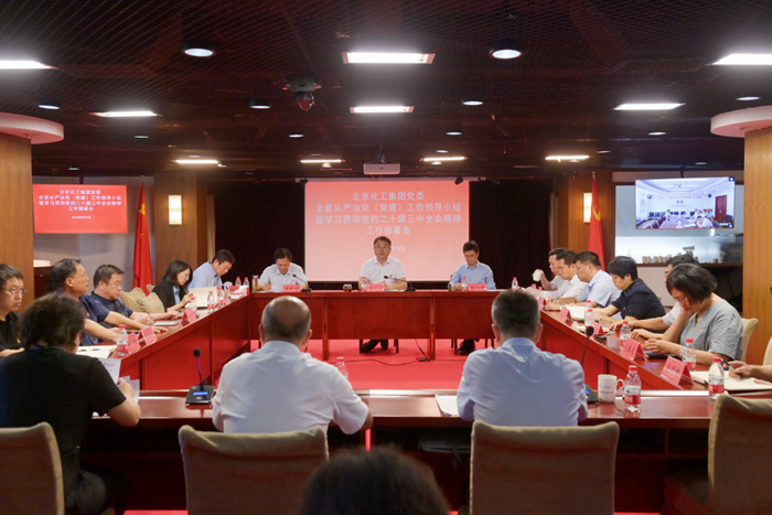 為深入學(xué)習(xí)貫徹黨的二十屆三中全會(huì)精神,持續(xù)推進(jìn)全面從嚴(yán)治黨向縱深發(fā)展,8月22日,北京化工集團(tuán)黨委召開(kāi)全面從嚴(yán)治黨(黨建)工作領(lǐng)導(dǎo)小組暨學(xué)習(xí)貫徹黨的二十屆三中全會(huì)精神工作部署會(huì),黨委書(shū)記、董事長(zhǎng)陳宇作總結(jié)講話;黨委副書(shū)記、董事、總經(jīng)理?xiàng)钚褫x出席會(huì)議;黨委副書(shū)記吳瑞峰主持會(huì)議。