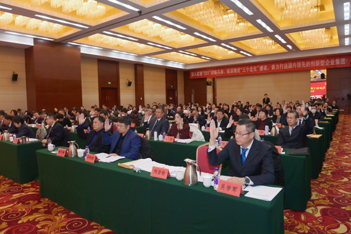 楊旭輝以《深入實施“231”戰(zhàn)略布局 縱深推進(jìn)“三個北化”建設(shè) 奮力打造國內(nèi)領(lǐng)先的創(chuàng)新型企業(yè)集團(tuán)》為題作工作報告。