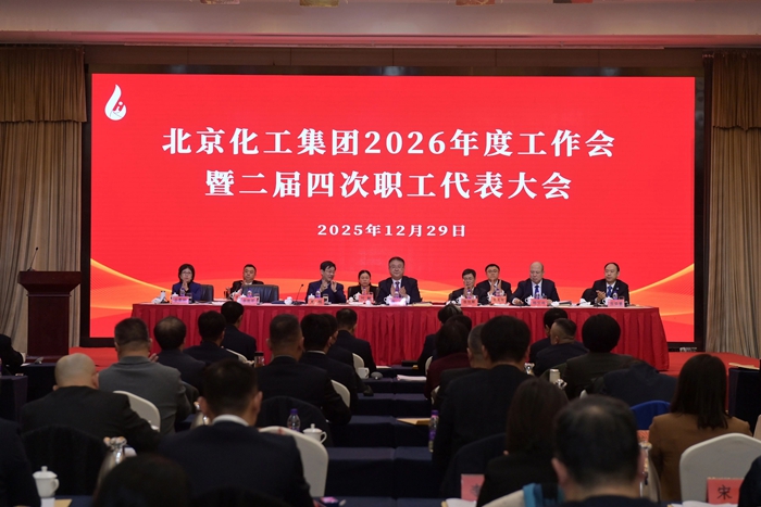 12月29日,北京化工集團(tuán)召開2026年度工作會(huì)暨二屆四次職工代表大會(huì),黨委書記、董事長陳宇以《堅(jiān)持“231”戰(zhàn)略布局和“三個(gè)北化”建設(shè)不動(dòng)搖 奮力書寫集團(tuán)公司“十五五”時(shí)期高質(zhì)量發(fā)展的嶄新篇章》為題作總結(jié)講話,黨委副書記、董事、總經(jīng)理?xiàng)钚褫x以《砥礪收官“十四五” 擘畫啟航“十五五”——為打造國內(nèi)領(lǐng)先國際知名的創(chuàng)新型企業(yè)集團(tuán)而奮斗》為題作工作報(bào)告,黨委常委、副總經(jīng)理韓寶海主持會(huì)議。